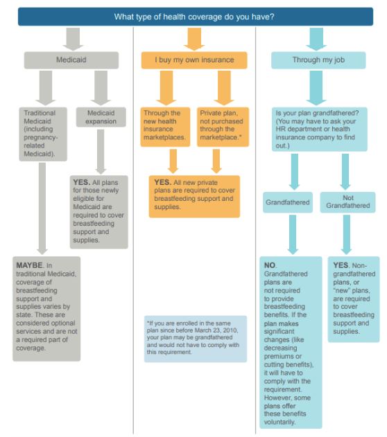 If your health plan existed before the legislation of the PPACA (or before March 2010), your health care plan is considered “grandfathered”. Under this category, preventive services may not be covered, and thus you may have to pay additionally to access coverage for breastfeeding support and supplies.